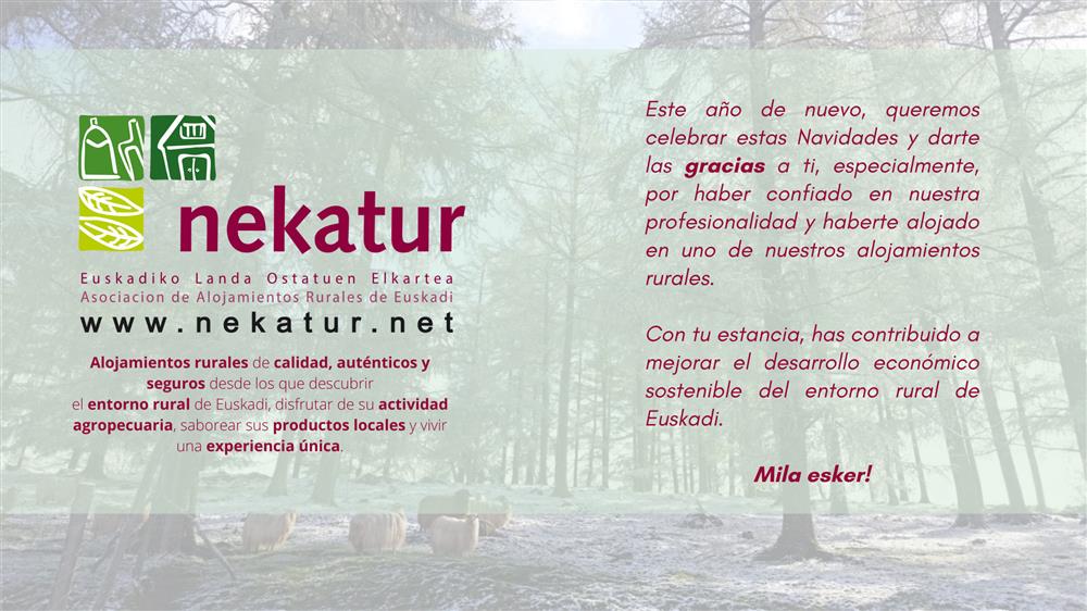 Nekatur oparitzen duzunean egonaldia baino gehiago oparitzen duzu. Gure lurraldearen esentzia deskubritzeko pasaportea dira. Gure ostatuek ingurune natural zoragarri batean hurbileko egonaldia egiteko aukera ematen dizute. Horregatik, egin ezazu aurten opari ezberdin bat. Oparitu esperientzia eta oroitzapen ahaztezinak gure