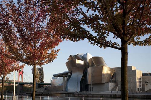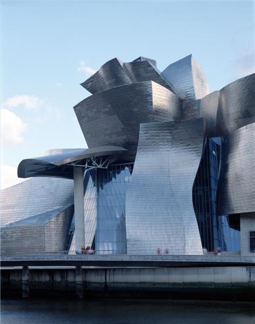 Hace ya casi dos décadas que el arte en Bilbao se viste de titanio. Volúmenes y perspectivas, sinuosas curvas, juegos de luz y color... El edificio, obra de Frank Gehry, constituye un magnífico ejemplo de la arquitectura más vanguardista del siglo XX y conforma un seductor telón de fondo para la exhibición del arte.
